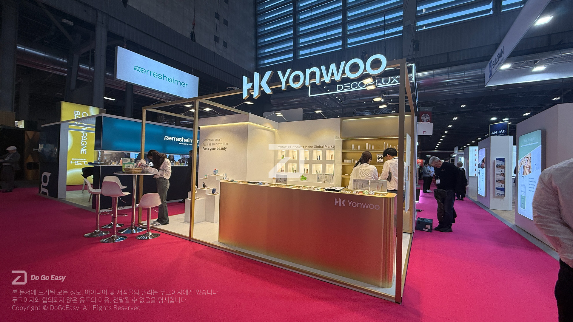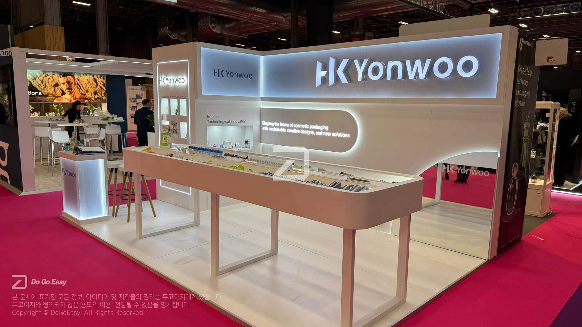부스 위치상 제한적인 공사 일정이었으나, 주최 사무국과의 긴밀한 사전 협의를 토대로 안전하고 정교하게 완공하여 프로젝트의 신뢰도를 높였습니다.