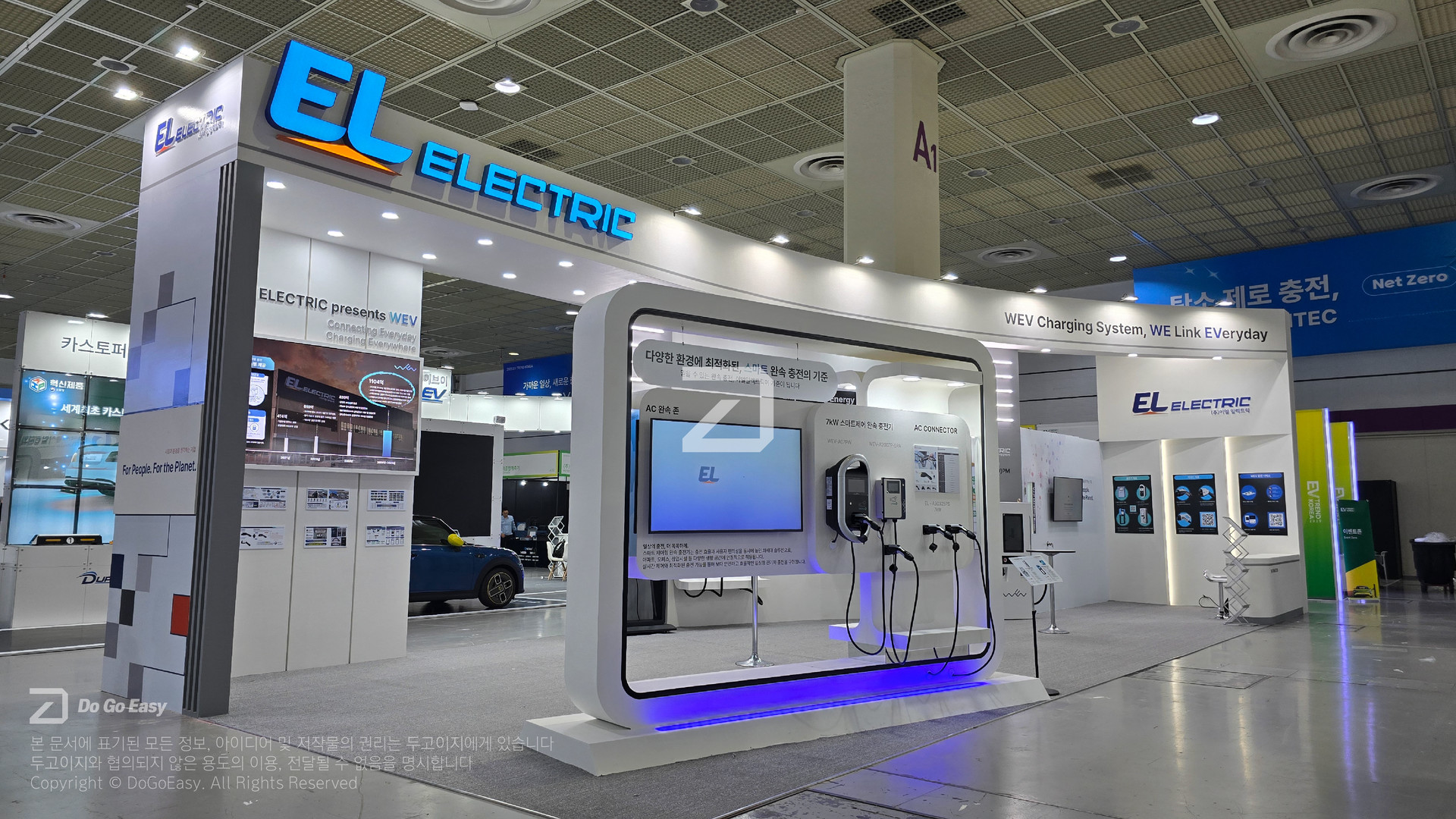 브랜드의 기술력이 돋보일 수 있도록 시인성 높은 디자인을 적용하고, 한정된 공간 안에서 효율을 극대화하는 각종 전시기법을 활용하여 전시 제품의 활용성을 최대로 끌어올린 레이아웃을 구성했습니다.